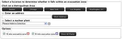 Do you live within 50 miles of a nuclear reactor? One third of Americans do. Property contaminated by nuclear materials is not covered by insurance, so if your house is affected, you could be displaced permanently and lose everything. Use the tool below to find out if you are within an evacuation zone and are at risk. Also notice the number of people who would have to be evacuated if there was an accident at the plant closest to you. Do you really think that is possible? We don't.