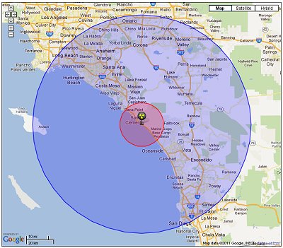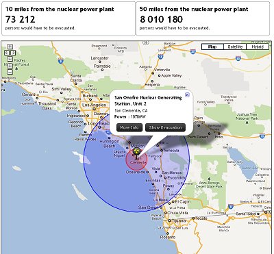 To help us here in the U.S. understand the dangers nuclear power plants pose Physicians for Social Responsibility (PSR) have created some very useful maps of 10 mile and 50 mile evacuation zones around U.S. nuclear power plants. Hundreds of thousands and even millions of people would need to be evacuated if there were an accident at just one of these nuclear power plants. PSR makes the point that property contaminated by nuclear materials is NOT covered by insurance. Looking at the state of disaster preparedness in the U.S. - say, Katrina for instance - it is doubtful that so many people could be evacuated within any reasonable time frame.