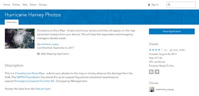 Crowdsource Story Map - simply submit your photos and they will appear on the map (automatic location from your device). This will help first responders and emergency managers identify needs.