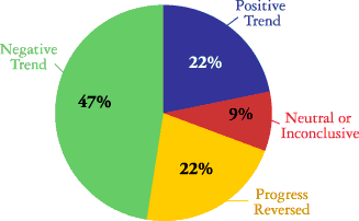 Two-thirds of the indicators in this report show a negative long-term trend or reversal of a positive trend.