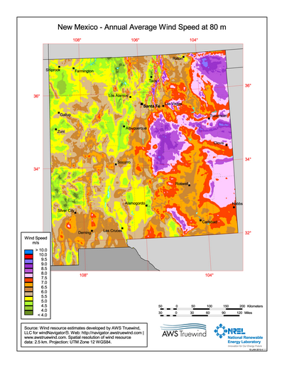 Download Free New Mexico 80 Meter Wind Energy Maps & Charts